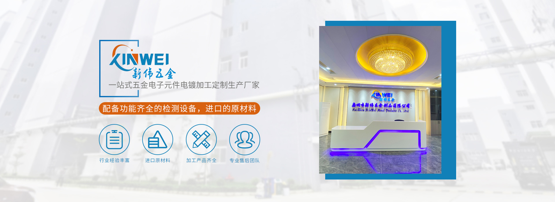 惠州市新偉五金制品有限公司(簡稱:新偉五金)坐落于中國廣東省惠州市,成立于2010年,是一家專業(yè)電鍍各種高品質(zhì)功能性的環(huán)保五金電子元件供應(yīng)商,公司已通過ISO9001:2015及IATF16949:2016質(zhì)量體系認(rèn)證。客戶至上,品質(zhì)至上,承蒙新老客戶的信賴,公司發(fā)展迅速,廠房車間面積10000平方米,現(xiàn)有員工200名,并擁有一批從事電鍍行業(yè)10年以上、經(jīng)驗豐富的技術(shù)骨干,為客戶解決許多疑難問題,另有一支品質(zhì)工程小組,專業(yè)檢測產(chǎn)品品質(zhì),杜絕不良品外流,深受客戶好評。